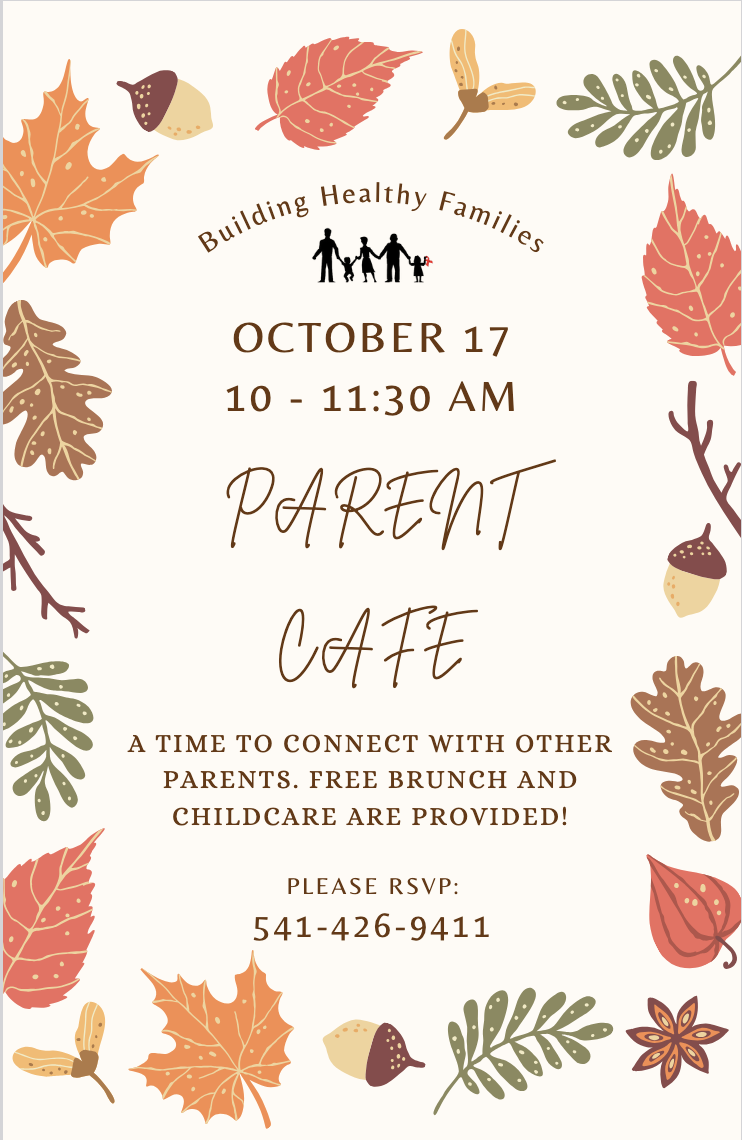 Free 6 week parent support group with evidence-based curriculum. Learn key concepts from parent educators, including techniques for effective discipline and communication. Fall Class October 2 - November 6 Thursdays 2-3pm At Building Healthy Families in Enterprise Childcare available if needed, complimentary take-home meal, incentive prizes RSVP at (541) 426-9411 Group storytime and craft to follow. Family friendly atmosphere. Time to connect with other families. |